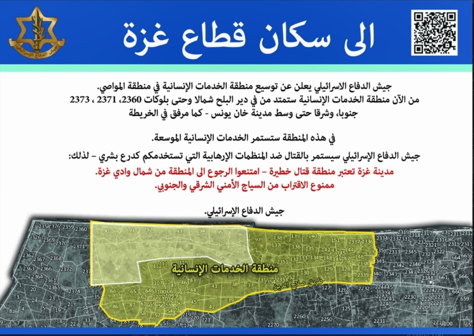 Les Forces de défense israéliennes annoncent l'expansion de la zone humanitaire à Al Mawasi.