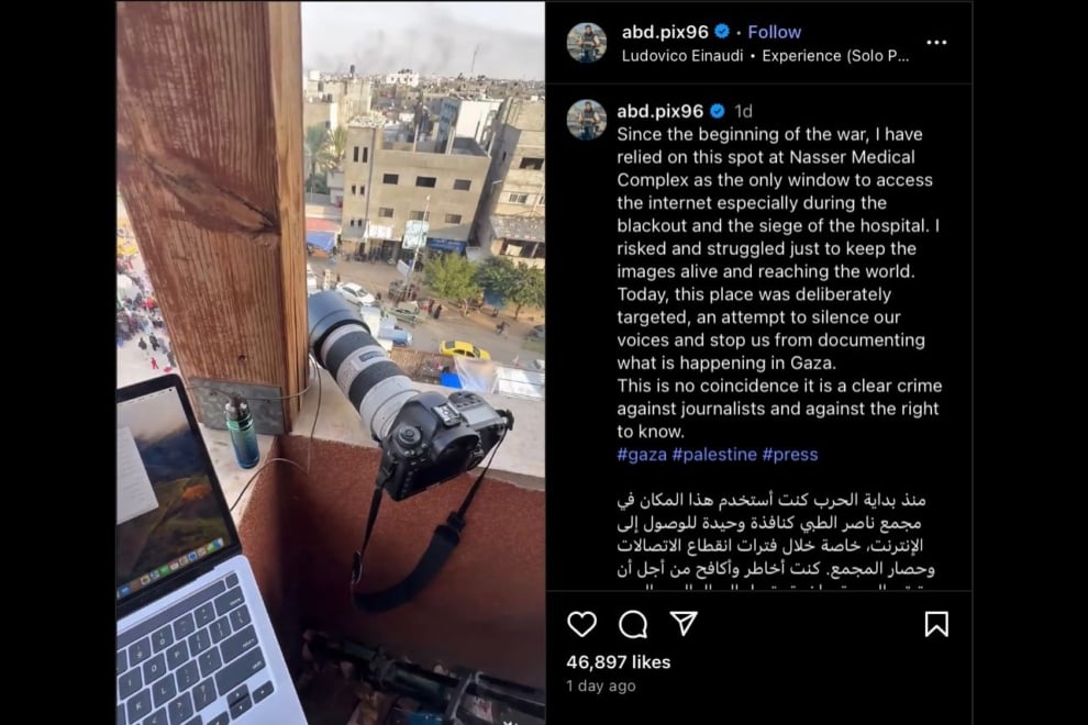 À partir de lundi après-midi, au milieu de la condamnation de la communauté internationale, Israël insiste sur le fait qu'il a cherché à « démanteler une caméra placée par le Hamas » et défend qu'il a agi pour « éliminer une menace ». « Ce n'était pas une erreur. Ils savaient où nous étions », dénonce le photojournaliste Abdelrahman Allout. Depuis le début de l'offensive sur Gaza, le quatrième étage de l'hôpital était devenu « le seul endroit avec un accès Internet stable », explique-t-il.