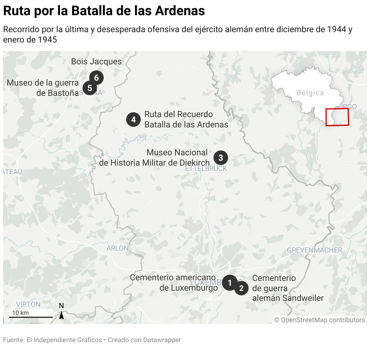 Mais l’effet de surprise a laissé place à un mois de combats. Les renforts alliés et la défense américaine à Bastogne et à Saint-Vith ont stoppé l'avancée allemande, qui a été pénalisée par des pénuries de carburant, des conditions hivernales rigoureuses – neige, pluie verglaçante, vents violents ou blizzards – et des problèmes dans la chaîne d'approvisionnement. Début janvier, la contre-attaque alliée parvient à repousser les Allemands et, à la fin du mois, les Alliés ont récupéré les positions qu'ils occupaient six semaines plus tôt. L'un des itinéraires dessinés par Route de la Libérationl'organisation qui entretient la mémoire de la Seconde Guerre mondiale, parcourt désormais cette bataille décisive et coûteuse qui a décidé du cours du conflit.