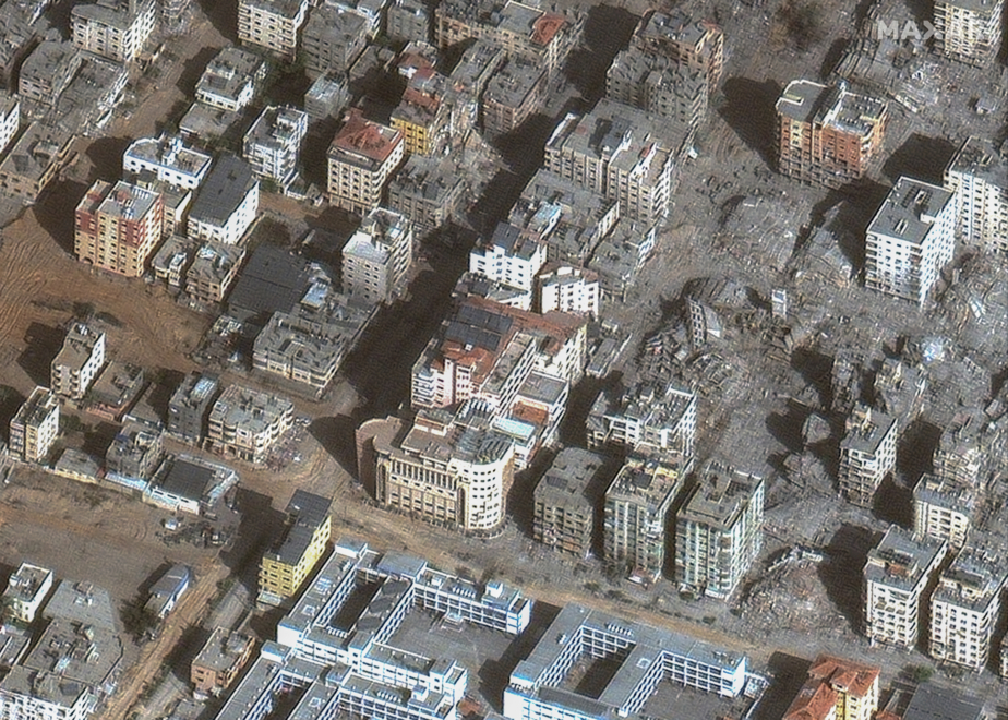 Destruction à proximité de l’hôpital Al Quds, dans la ville de Gaza. Maxar