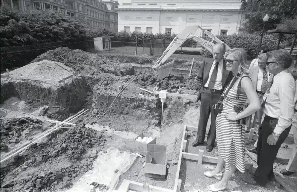 - En 1975, le président Gerald Ford a installé une piscine extérieure sur les pelouses sud, entièrement financée par des dons privés.