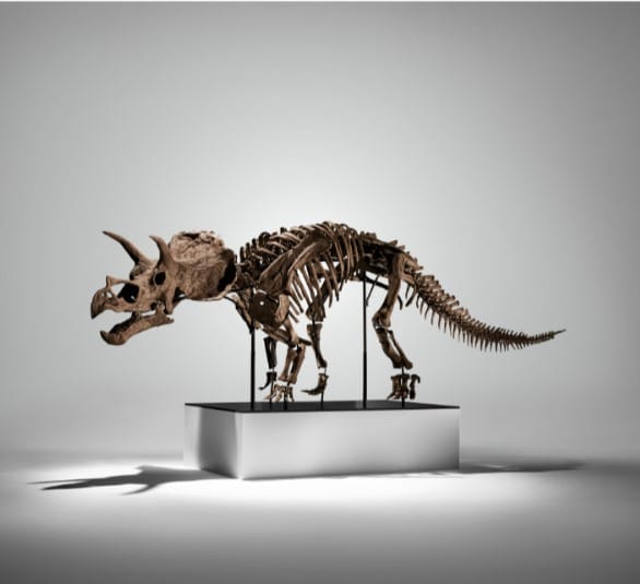La maison Phillips, plus tournée vers l'art contemporain, ajoute à la mêlée un double portrait inquiétant de Francis Bacon (à partir de 13 millions), un résumé de Joan Mitchell (10 millions) et le squelette le plus complet d'un jeune tricératops, qui démarre à 2,5 millions. La hausse de ces ventes paléontologiques inquiète les chercheurs, même si elle ne devrait pas dépasser le record des dinosaures. Sommetacquis en 2024 pour près de 45 millions.